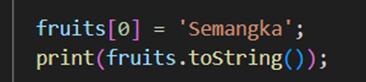Mengubah elemen list pada index 0 menjadi semangka, outputnya: