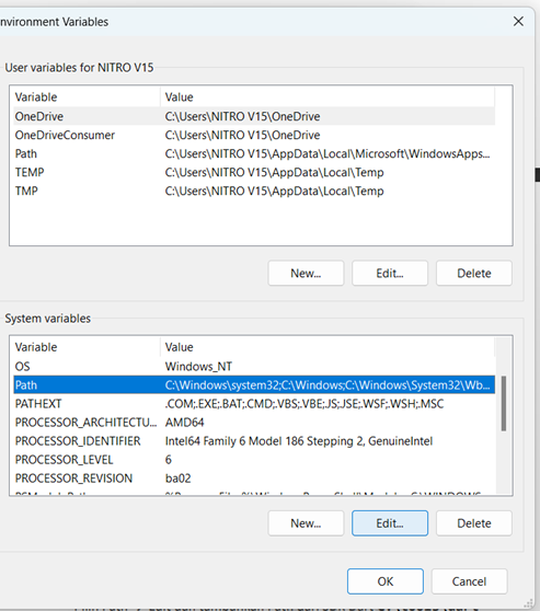 Buka environment variables, lalu cari path pada system variables, dan klik edit