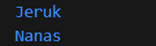 Menambahkan jeruk ke dalam list. Outputnya: