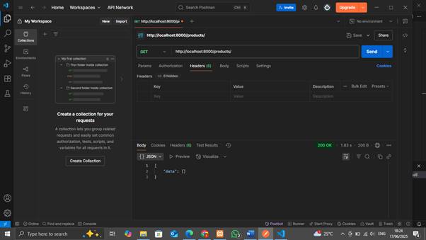 Masukkan URL http://localhost:8000/products/ lalu send dan lihat hasilnya